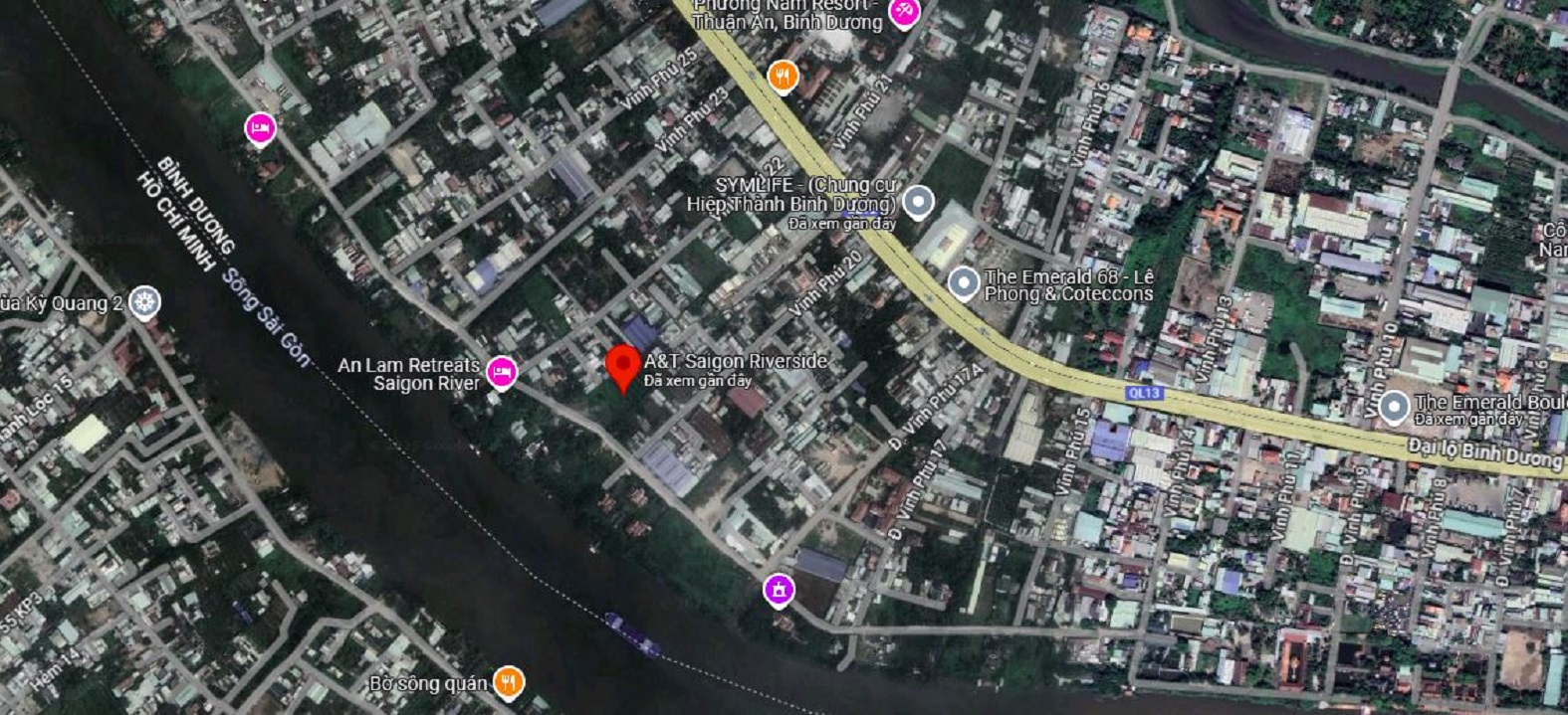 a&t saigon riverside tọa lạc tại mặt tiền đường Ven Sông SG, phố Vĩnh Phú, đô thị Thuận An, tỉnh Bình Dương. Vị trí lối vào giao thương quan yếu, kết nối TP.HCM, Bình Dương và các tỉnh miền Đông Nam Bộ. Vị trí a&t saigon riverside chỉ bí quyết TP. Thủ Đức một.8km mang đến cơ hội trải nghiệm cuộc sống tiên tiến, tiện thể nghi ngay cửa ngõ Sài Gòn